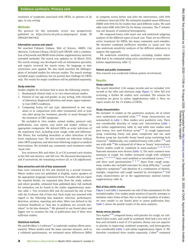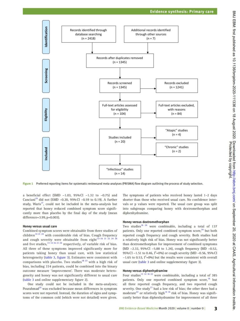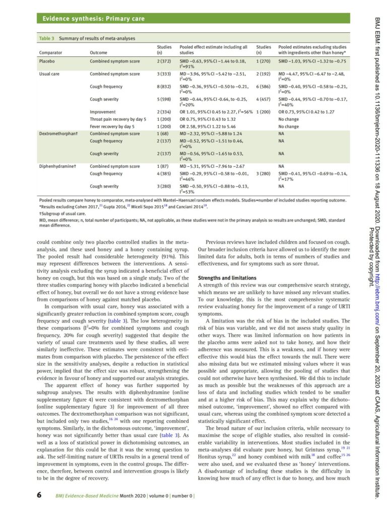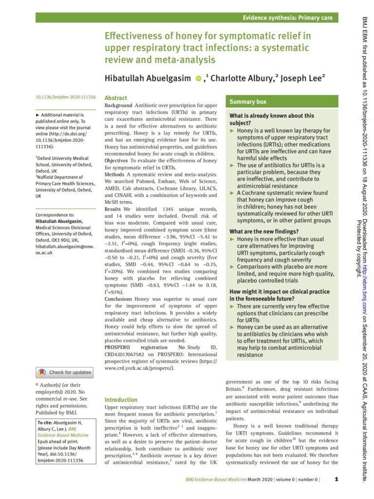 Effectiveness of honey for symptomatic relief in upper respiratory tract infections: a systematic review and meta-analysis