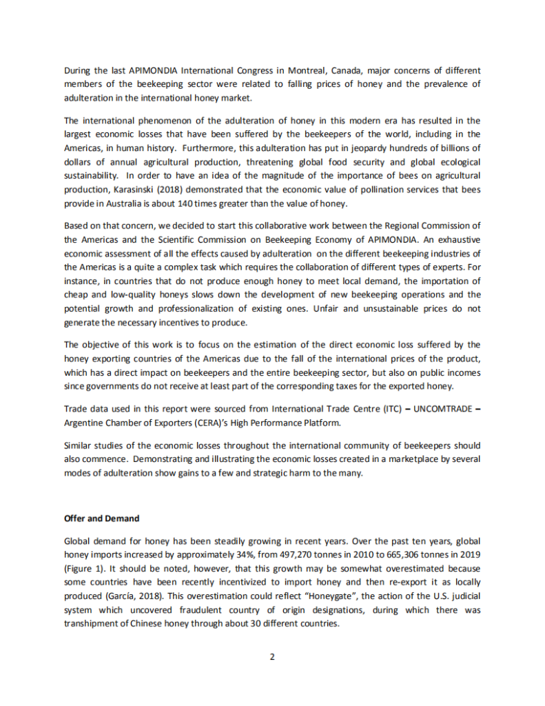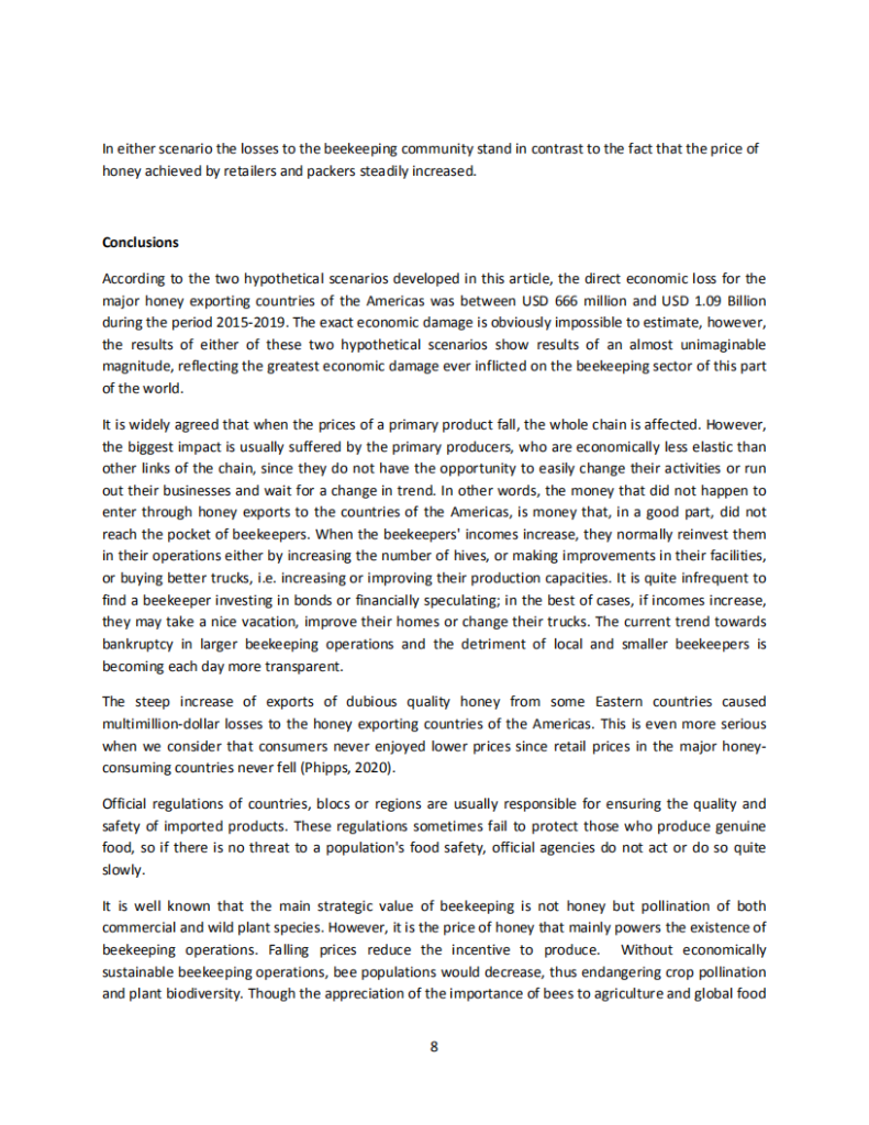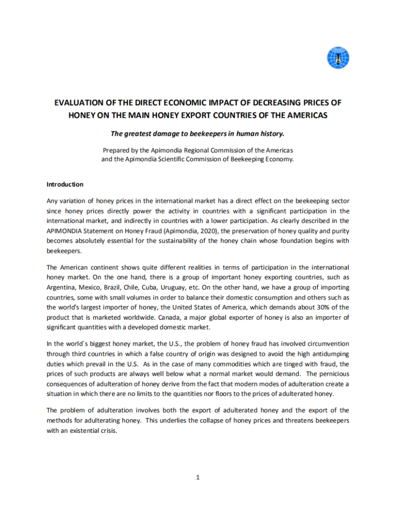 Evaluation of the direct economic impact of decreasing prices of honey on the main honey export countries of the Americas