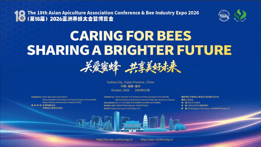 On behalf of Asian Apicultural Association (AAA), it is our honor to invite you to attend the 18th AAA Conference & Bee Industry Expo, to be held in October 2026 in Fuzhou, China. The 9th AAA Conference was successfully held in Hangzhou, China in 2008, and the Fuzhou event promises to be another grand occasion. This premier event will gather 1200+ experts from 50+ countries to address critical topics: bee Biology, bee heath, beekeeping technologies and economy, pollination, apitherapy etc.