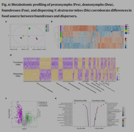 Ectoparasitic mites ofthe genera Varroa and Tropilaelaps have evolved to exclusively exploithoney bees as food sources during alternating dispersal and reproductive life history stages.Here we show that the primary food source utilized by Varroa destructor depends on the hostlife history stage. While feeding on adult bees, dispersing V. destructor feed on the abdominalmembranes to access to the fat body as reported previously. However, when V. destructor feedon honey bee pupae during their reproductive stage, they primarily consume hemolymph,indicated by wound analysis, preferential transfer of biostains, and a proteomic comparisonbetween parasite and host tissues, Biostaining and proteomic results were paralleled bycorresponding findings in Tropilaelaps mercedesae, a mite that only feeds on brood and has astrongly reduced dispersal stage. Metabolomic profiling of V. destructor corroboratesdifferences between the diet of the dispersing adults and reproductive foundresses. Theproteome and metabolome differences between reproductive and dispersing V. destructorsuggest that the hemolymph diet coincides with amino acid metabolism and proteinsynthesis in the foundresses while the metabolism of non-reproductive adults is tuned tolipid metabolism. Thus, we demonstrate within-host dietary specialization ofectoparasiticmites that coincides with life history of hosts and parasites.