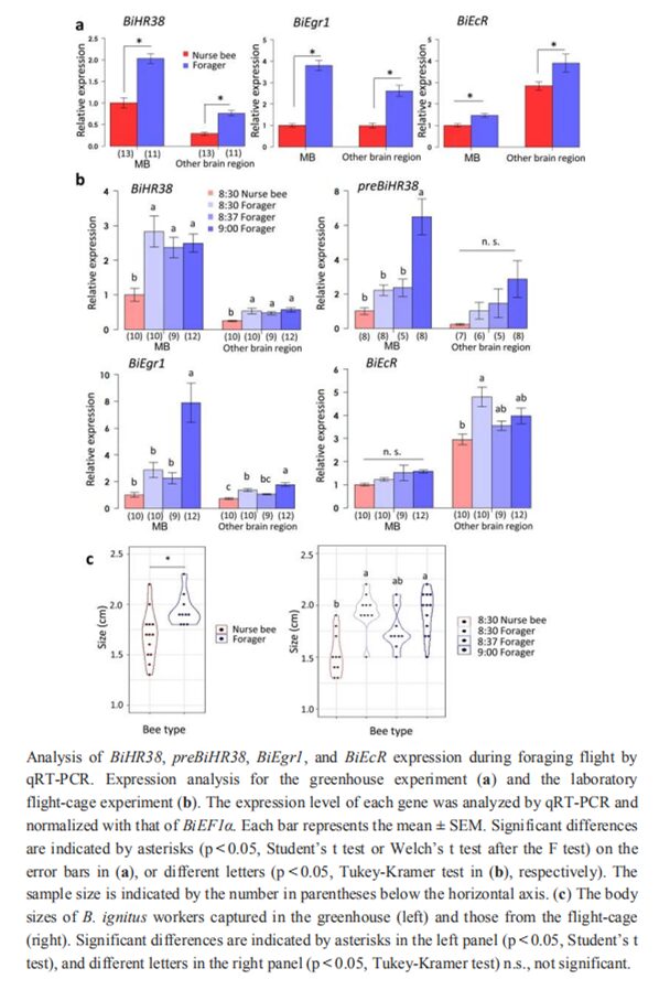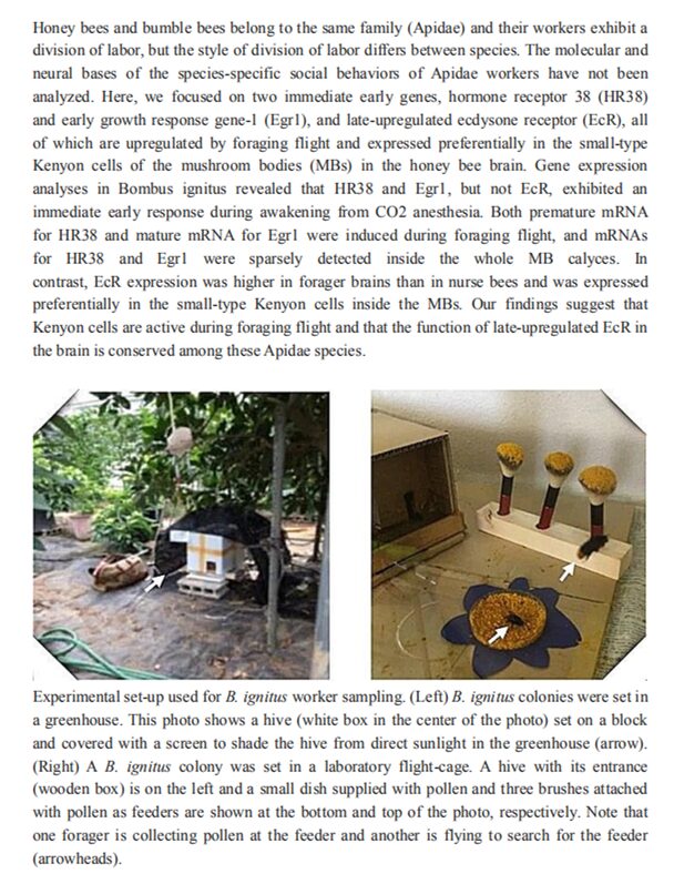 Neural activity mapping of bumble bee (Bombus ignitus) brains during foraging flight using immediate early genes